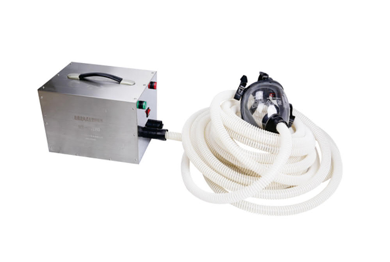 電動送(sòng)風式長管呼吸器是由送風機將過濾後的大氣空氣經輸氣長(zhǎng)管輸(shū)送(sòng)給佩(pèi)戴者的一種安全防護(hù)裝備,適用於化(huà)工(gōng)、石油、電(diàn)力、治金,特別是在窄小空間中發揮極好的人體呼吸保護作用。該產品使用時不需要壓(yā)縮(suō)空氣源,而是利(lì)用電動風機將新鮮空氣通過導氣管送入麵罩,供呼吸者(zhě)呼吸。用220V交流電源插上接頭即可工(gōng)作,不受時(shí)間限製,用途廣泛。